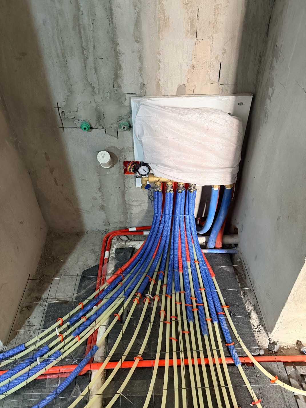 上周装修终于进入隐蔽工程的核心环节 —— 地暖铺设,看着透明色像毛细血管一样的地暖管铺满全屋地面,突然觉得之前和设计师的反复沟通都值了!